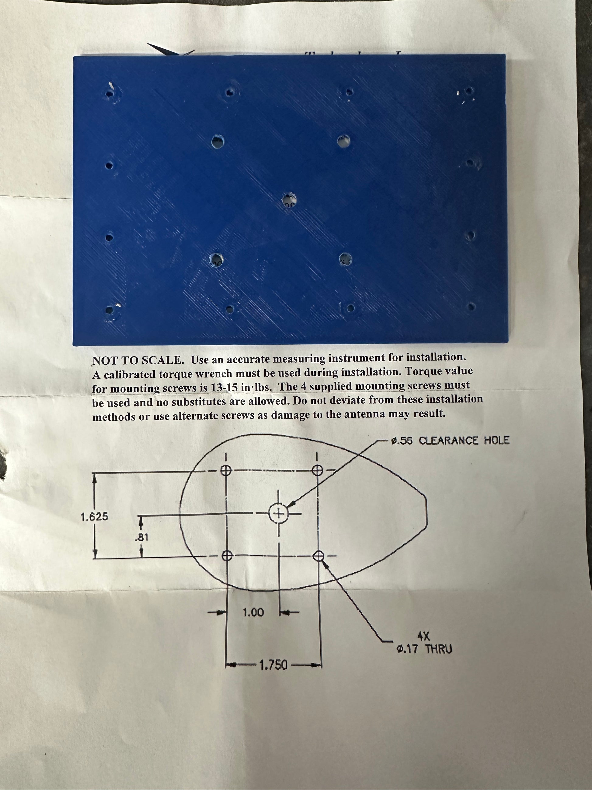 This is a 3D printed jig designed to assist in drilling and mounting a Garmin GA35 antenna. It is similar to the Garmin TSO part 115-00846-10. This tool is intended for experimental aircraft builders who may fabricate their own components.